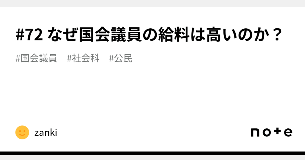 こうして考えると、国会議員の役割は非常に責任重大であり、その価値が反映された給料として理解できる。