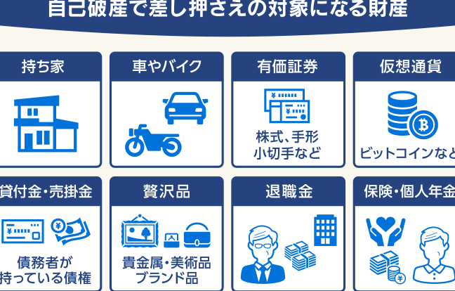 - 資産の没収: 法律により、所有資産の一部が債権者に渡る可能性