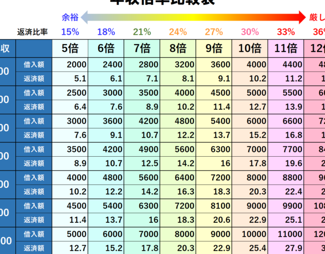 返済負担率は、収入に対する返済額の割合を表します。通常、返済負担率は25%以下が理想とされています。これを超えると、生活が厳しくなる恐れがあります。以下の指標に注意しましょう。