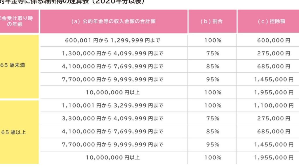 - 年金控除が適用される。一定の控除があり、総収入から差し引かれるため、課税所得が減少します。