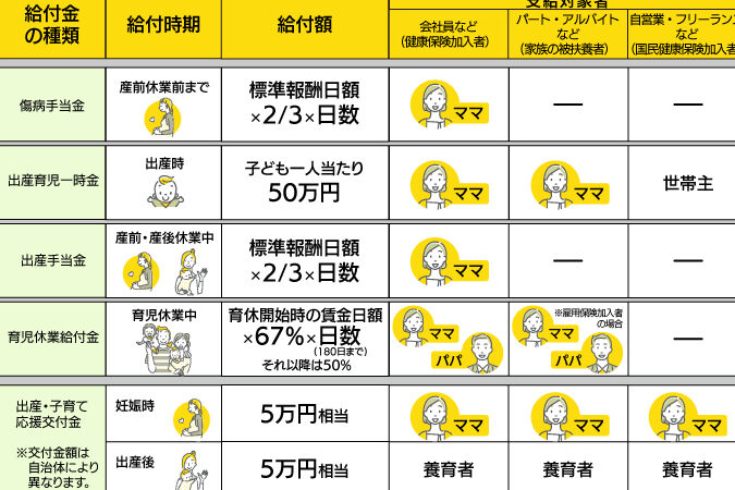 - 出産手当金:出産後、一定期間にわたり支給される手当。