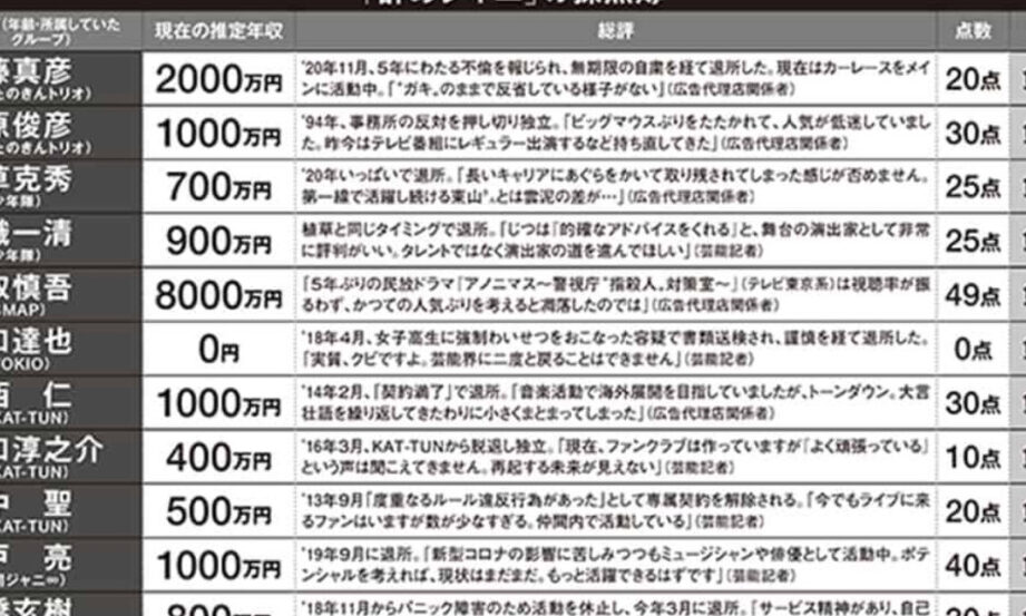 - 最盛期: 1990年代には、ジャニーズのアイドルとして、トップクラスの年収が当たり前になりました。