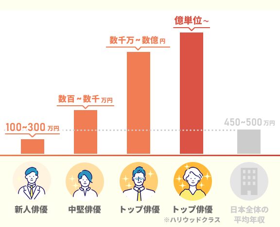 - 俳優: 年収は500万~3000万円の範囲が一般的。
