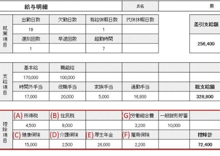 給料から引かれる金額を理解するには、具体的な例が有効です。ここでは、サンプル給与を使って、実際にどれくらいの税金が引かれるかを見ていきます。