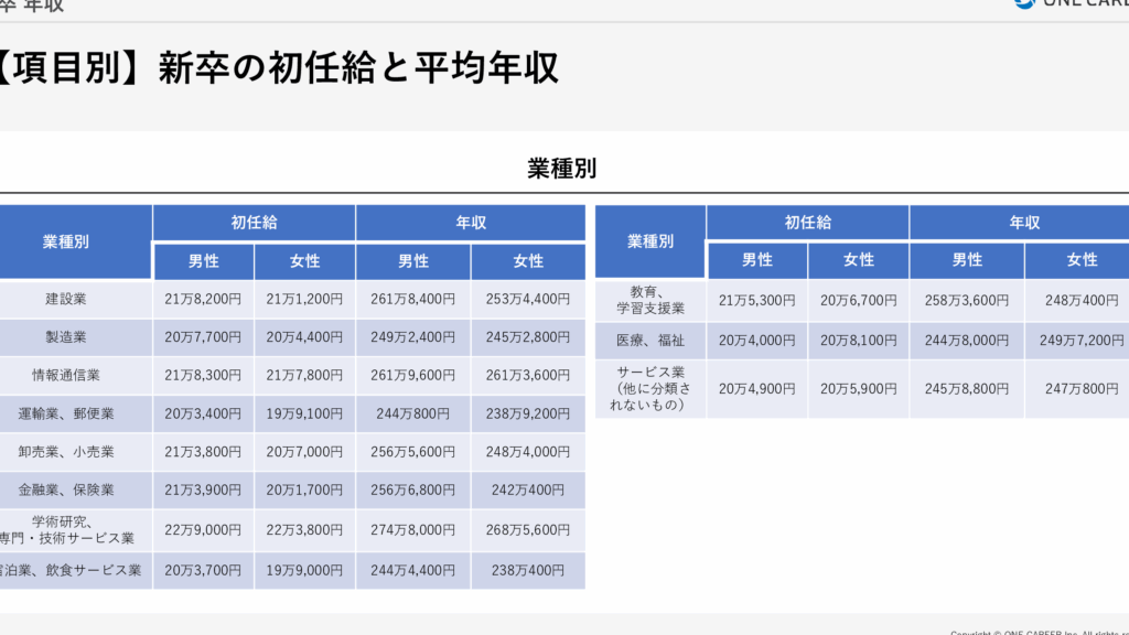 業界別に試用期間の給料を比較することで、どの業界が有利かが見えてくる。以下に主な業界の給与を示す。