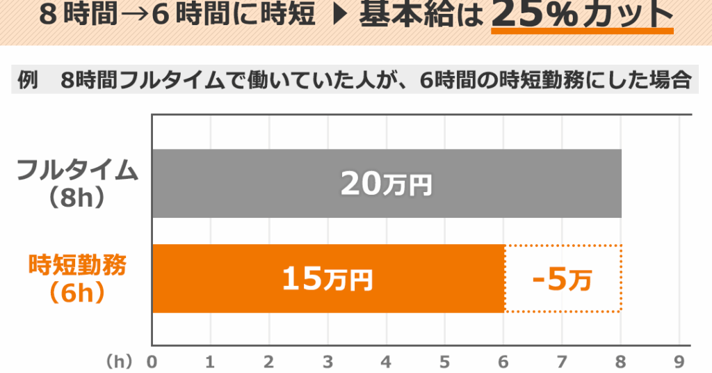 - 月給50万円 から 時短勤務の月給30万円 になるケース