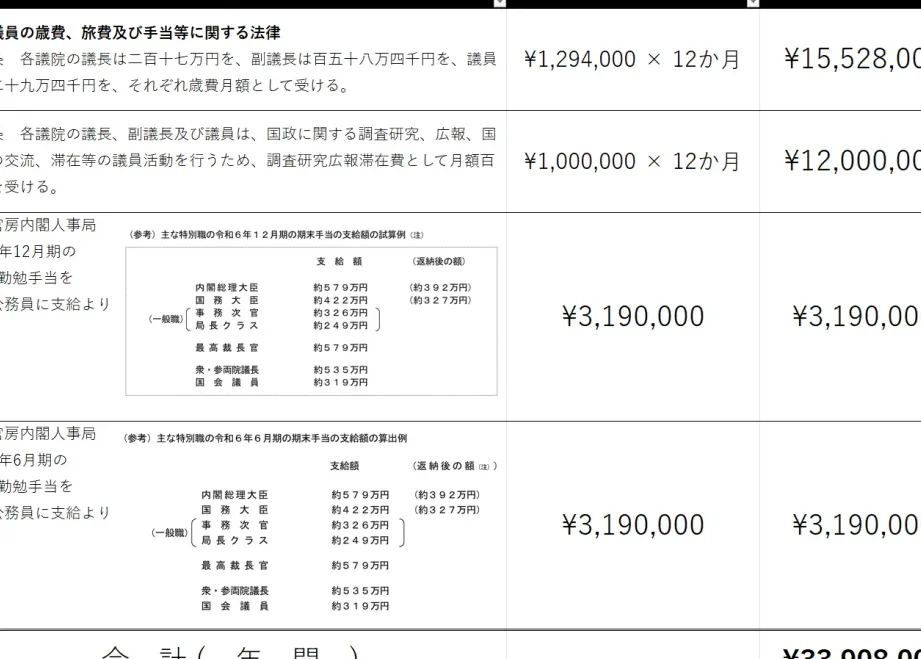 国会議員の給与制度