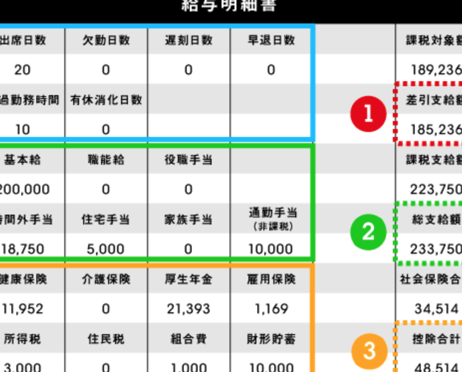 給料の明細書は、通常、支給日かその前日に渡され、勤怠管理や給与の詳細を確認できるようになっています。