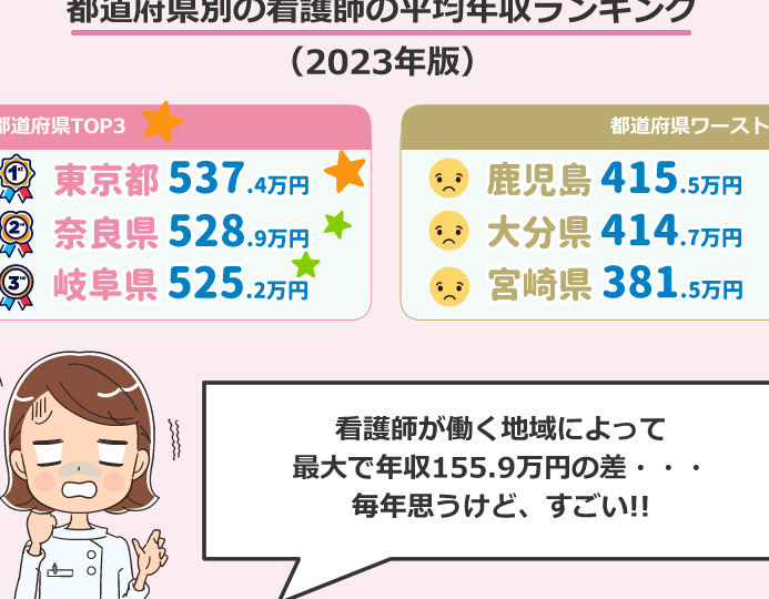 - 地域差: 都市部の看護師は、地方に比べて給与が高くなるケースが一般的だ。
