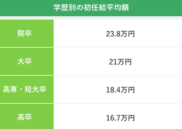 | 業界 | 平均初給料日 | 平均基本給 |