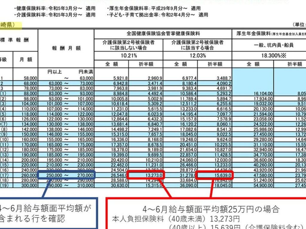 給料25万円に対する社会保険料の計算