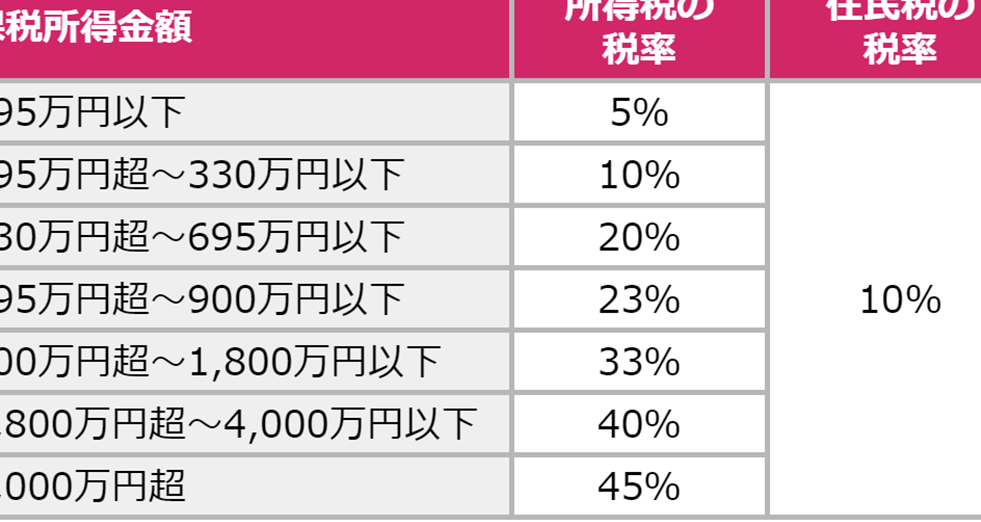 税率表は、年ごとに国税庁のウェブサイトで最新情報が提供されます。私たちが所得税を計算する際には、この表が重要です。2023年度の税率は以下の通りです。