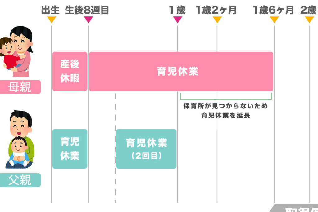 - 育休の取得期間: 原則として、子どもが1歳になるまで取得できます。特別な理由がある場合、最長で2歳まで延長可能です。