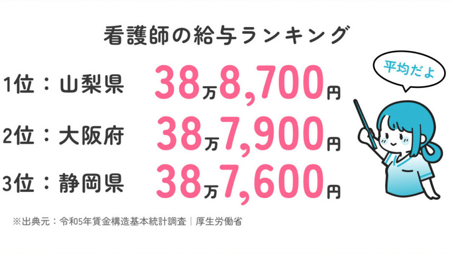 以下の表は主要な47都道府県における看護師の平均年収を示しています。
