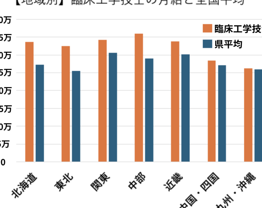 このデータから、臨床工学技士はほかの医療職と同様に高い給与を得ることができています。特に、医療機関の数が豊富な地域では、給料も上昇傾向にあります。