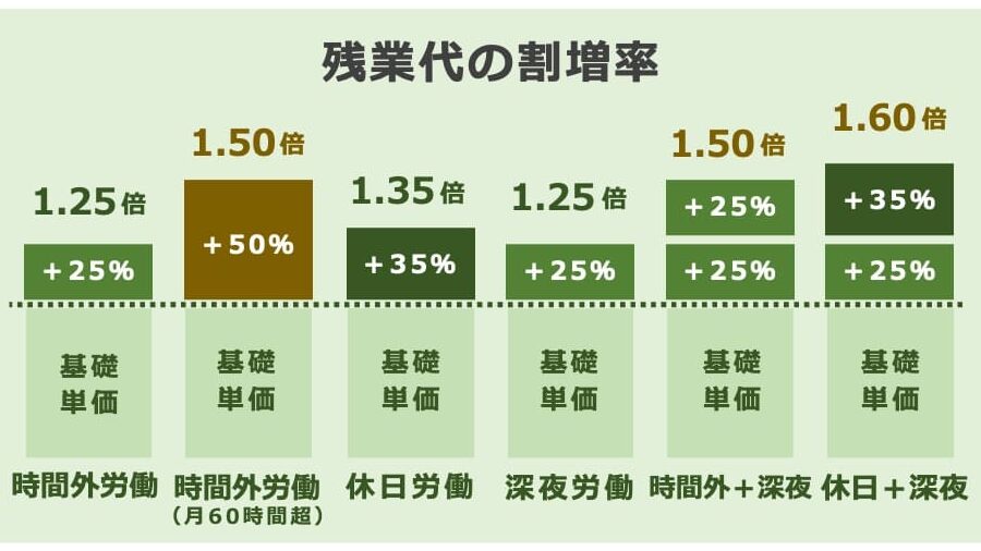 - 時間外労働は通常の労働時間を超えた勤務に適用
