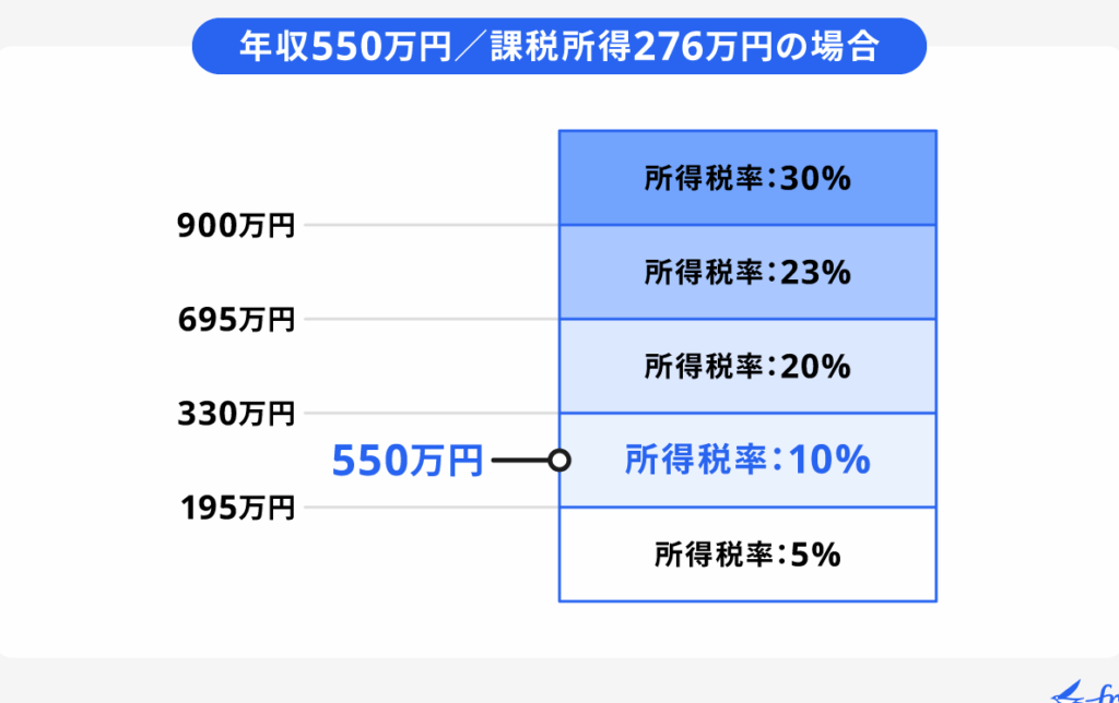 | 年収 | 課税所得 | 適用税率 | 所得税額 |