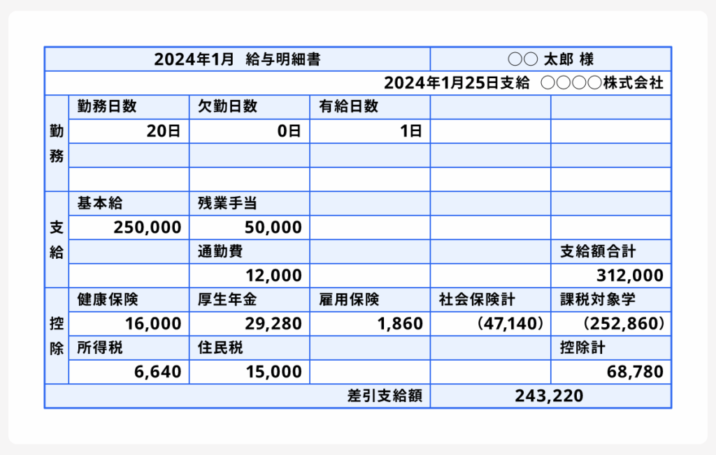 - 控除額: 控除には、税金、社会保険料、雇用保険料が含まれます。これらは、私たちの給料から差し引かれる金額であり、実際に手にする金額を決定します。