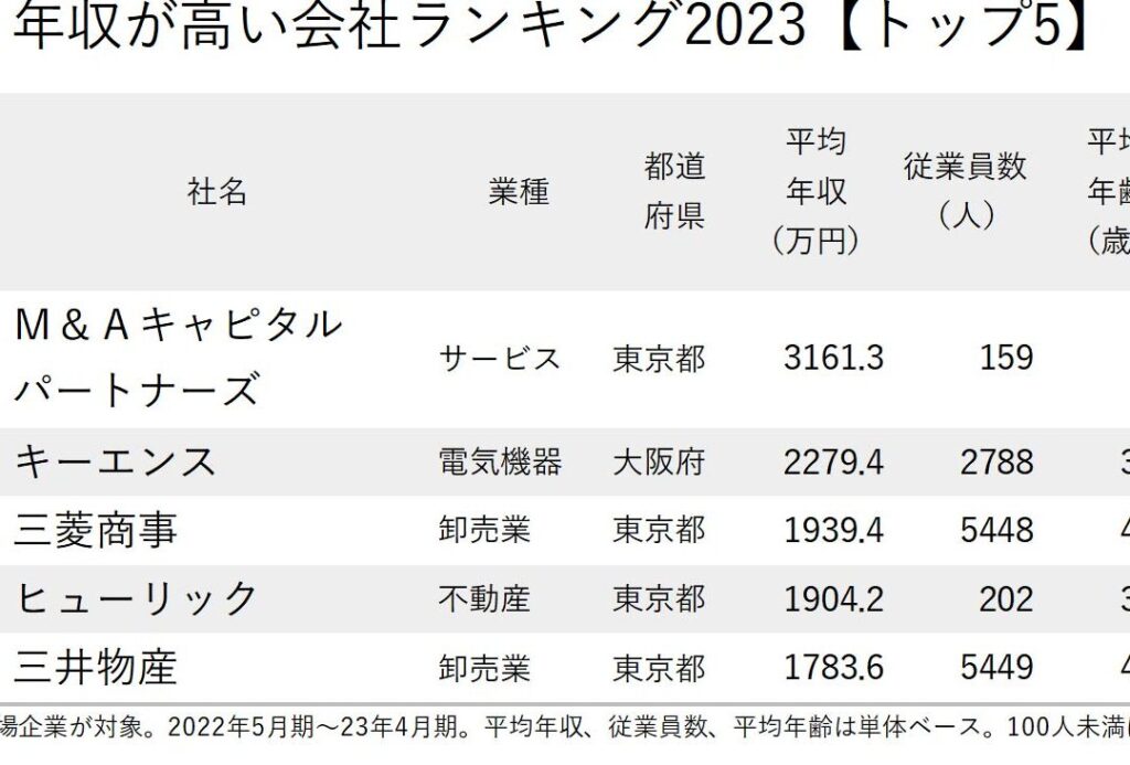 日本で最も給料が高い会社の情報は、さまざまなデータから得られます。**2023年のリポートによると、最も高い年収を提供する企業はソニーグループ株式会社です。**この会社の平均年収は約1,200万円で、技術とイノベーションに強みがあります。