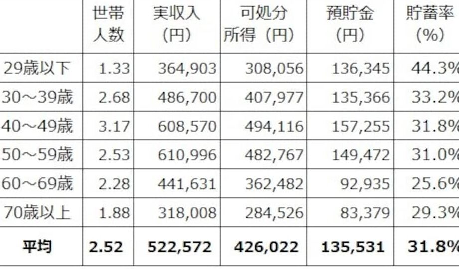 日本の平均貯蓄率