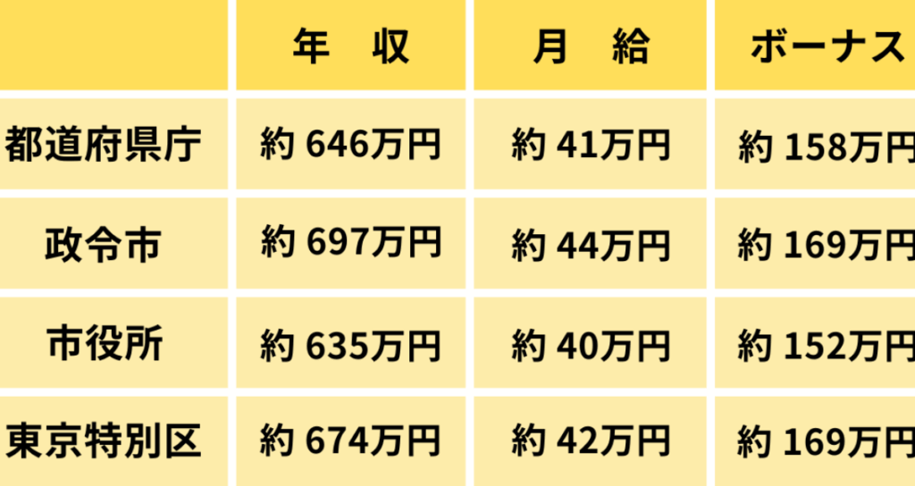 - 手当:地域手当や扶養手当、通勤手当といった追加の手当が支給される。これにより、生活費の負担が軽減される。