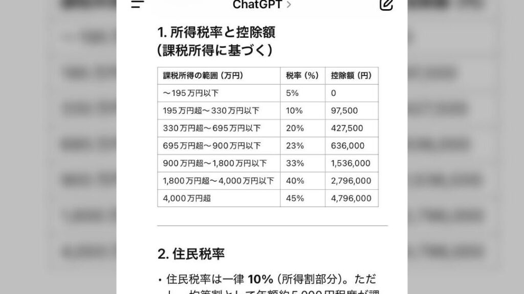 - 所得税: 収入に応じた累進課税が適用され、高所得者ほど税率が高くなります。