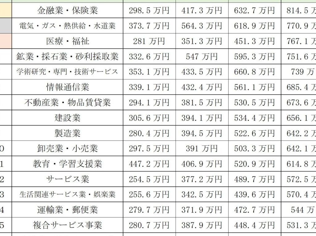管理職の給料は業種によって大きく異なる。以下に、主な業界の管理職給料を示す。