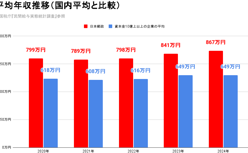 過去数年のデータでは、郵便局の正社員の平均基本給はおおよそ以下のように変動しています。