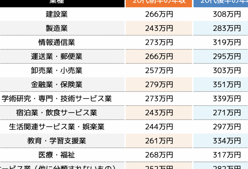 ただし、専門的なスキルや資格を持つ若年層は、高い給与を得る可能性もあります。例えば、IT関連の職種に就くと、スタート時でも年収400万円以上を期待できることもあります。
