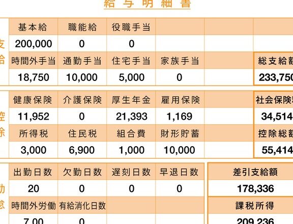 各項目の金額を見ることで、私たちはどれだけお給料から引かれているのか理解しやすくなります。例えば、基本給が25万円の場合、手当が2万円、合計27万円から引かれる税金と社会保険料を確認しなければなりません。